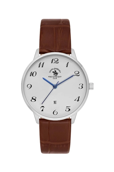 Santa Barbara Polo Racquet Club SB.8.10003-1 İnce Kasa Deri Kordonlu Rakamlı Kadran Kahverengi Kadın Kol Saati