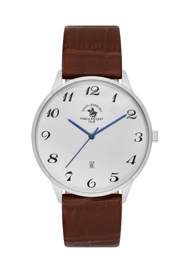 Santa Barbara Polo Racquet Club SB.8.10004-1 İnce Kasa Deri Kordonlu Rakamlı Kadran Kahverengi Erkek Kol Saati