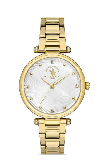Santa Barbara Polo SB.1.10411.2 Taşlı Tasarım Çelik Kordonlu 5 ATM Suya Dayanıklı Altın Renk Kadın Kol Saati