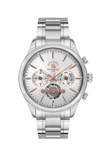 Santa Barbara Polo SB.1.10440.7 Tüm Fonksiyonları Aktif 5 ATM Suya Dayanıklı Çelik Kordonlu Metalik Renk Erkek Kol Saati