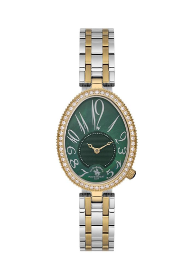 Santa Barbara Polo SB.1.10613-4 Taşlı Tasarım Oval Kadran Çelik Kordonlu 5 ATM Suya Dayanıklı Gümüş-Altın Kadın Kol Saati