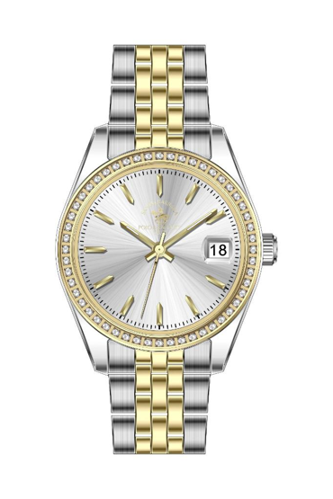 Santa Barbara Polo SB.1.10644-3 Takvim Göstergeli 5 ATM Suya Dayanıklı Çelik Kordon Çelik Kasa Gümüş-Altın Kadın Kol Saati
