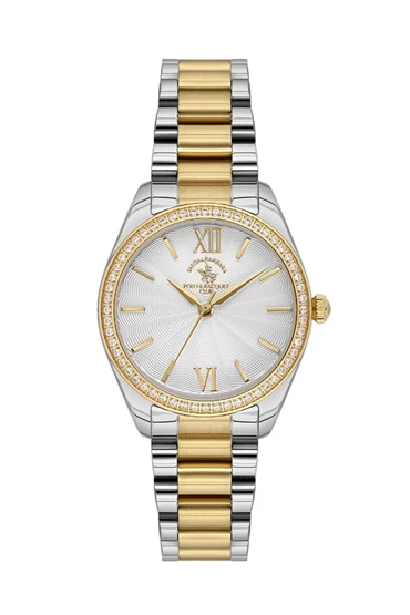 Santa Barbara Polo SB.1.10645-3 Taşlı Tasarım Çelik Kordonlu 5 ATM Suya Dayanıklı Gümüş-Altın Kadın Kol Saati