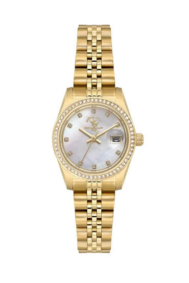 Santa Barbara Polo SB.4.10015-10 Takvim Göstergeli 3 ATM Suya Dayanıklı Çelik Kordon Çelik Kasa Altın Renk Kadın Kol Saati