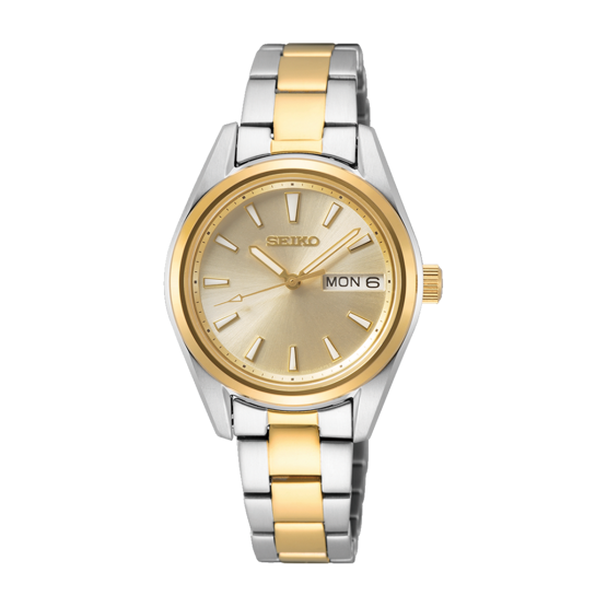 Seiko SUR354P1 Safir Camlı Çelik Kordon Çelik Kasa 10 ATM Suya Dayanıklı Metalik-Altın Renk Kadın Kol Saati