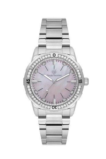 Sergio Tacchini ST.1.10443-3 Taşlı Tasarım 5 ATM Su Geçirmezlik Değerine Sahip Çelik Kordon Çelik Kasa Metalik Renk Kadın Kol Saati