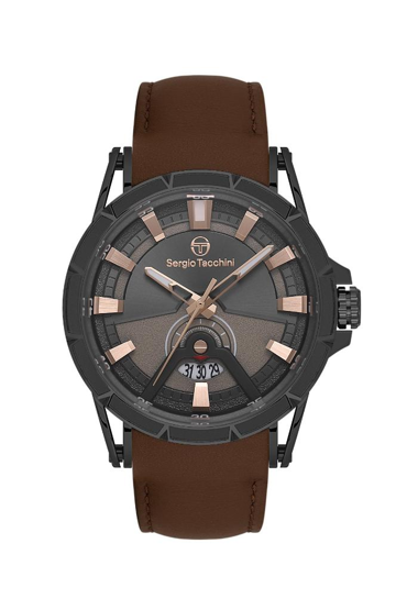 Sergio Tacchini ST.1.10455-4 Takvim Göstergeli Deri Kordon Kahverengi Erkek Kol Saati