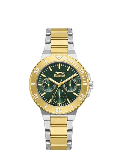 Slazenger SL.09.2416.4.05 İç Fonksiyonları Aktif Takvim ve Gün Göstergeli 5 ATM Suya Dayanıklı Metalik-Altın Renk Kadın Kol Saati Çok Renkli