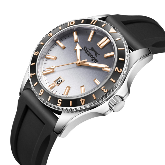 Slazenger SL.09.2531.1.05 Silikon Kordon Çelik Kasa 10 ATM Suya Dayanıklı Siyah Renk Erkek Kol Saati