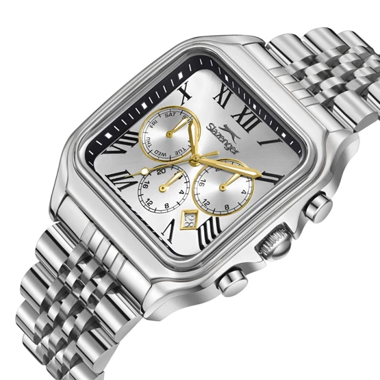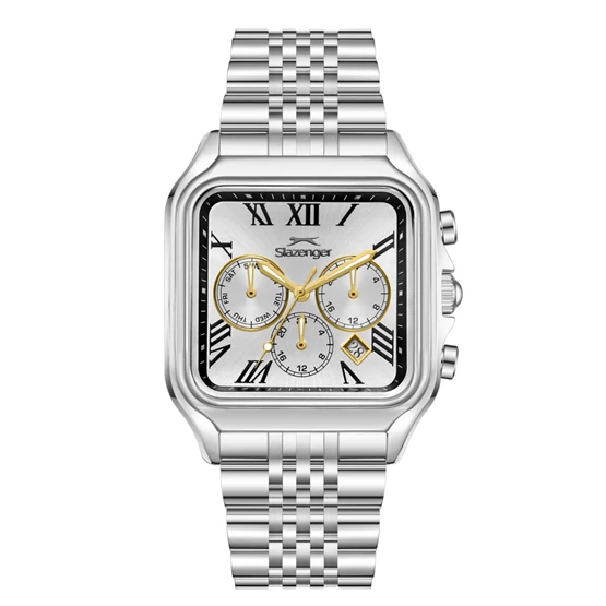 Slazenger SL.09.2547.2.05 Kare Kadranlı Çelik Kordon Çelik Kasa 10 ATM Suya Dayanıklı Metalik Renk Erkek Kol Saati Çok Renkli