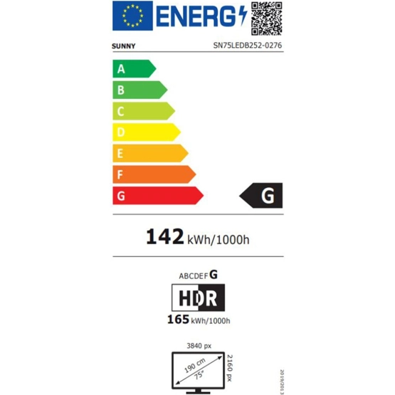 Sunny SN75LEDB252-0276 75" 190 Ekran - 4K Smart Uydu Wifi Webos Hdr10 Siyah 75'' / 190 cm
