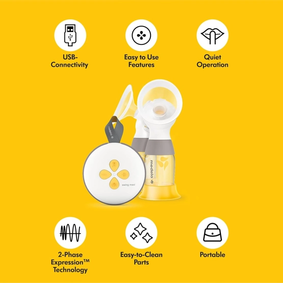 Daha kısa sürede daha fazla anne sütü: Swing Maxi çift elektrikli pompa ile çift pompalama -%18 daha fazla süt için ¹ sırayla her göğsü ifade etmektense daha yüksek enerji içeriğine sahip Geliştirilmiş hareketlilik, daha hızlı şarj: USB Tip-C bağlantısı, bu pompanın mikro USB'ye kıyasla daha hızlı şarj olabileceği anlamına gelirken dahili pil tam şarjla 6 pompalama oturumu sağlar Etrafınızda şekillendirilmiştir: PersonalFit Flex Kalkan'ın yumuşak, esnek, esnek kenarı ile oval şekli 360 derece döner, böylece konumunu göğüs şeklinize uyacak şekilde kolayca ayarlayabilirsiniz Doğal bir pompalama deneyimi: Medela 2 fazlı ifade Teknolojisi taklit eder Daha doğal bir his ve rahat bir pompalama deneyimi için bebeğin içgüdüsel ritimleri Paket içeriği: 1 x Swing Maxi motor ünitesi, 2 x 150 ml kapaklı şişe, 2 x şişe standı, 4 x PersonalFit Flex göğüs koruyucuları (2 x 21 mm, 2 x 24 mm), 1 x USB kablosu, 1 x USB adaptörü, kullanım kılavuzu ( Almanca) Açılan ürünlerde üretimsel bir hata bulunuyor ise değişim ve iadeleri yetkili teknik servisler yapmaktadır. Harici durumlarda açılan ürünlerin iadesi hijyen kuralları gereği mümkün değildir.