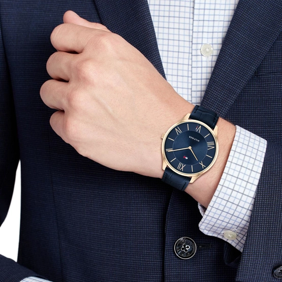 Kasa Çapı: 43 mm - Kasa Şekli: Yuvarlak - Kasa Materyali: Çelik - Kasa Rengi: Rose Gold - Kordon Materyali: Deri - Kordon Rengi: Lacivert- Kadran Rengi: Lacivert - Kadran Işığı: Yok - Taş: Yok - Çalışma Şekli: Analog - Teknolojisi: Quartz - Takvim: Yok - Kronometre: Yok - Alarm: Yok - Cam Özelliği: Mineral - Özellik: - Su Geçirmezlik: 3 ATM - Garanti Süresi: 2 YIL - Cinsiyet: Erkek