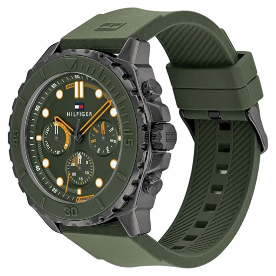 Kasa Çapı: 48 mm - Kasa Şekli: Yuvarlak - Kasa Materyali: Çelik - Kasa Rengi: Siyah - Kordon Materyali: Silikon - Kordon Rengi: Yeşil- Kadran Rengi: Yeşil - Kadran Işığı: Yok - Taş: Yok - Çalışma Şekli: Analog - Teknolojisi: Quartz - Takvim: Var - Kronometre: Yok - Alarm: Yok - Cam Özelliği: Mineral - Özellik: Kasa Kalinlik: 13 mm - Kordon Uzunluğu: 20 cm - Kordon Genişliği: 24 mm - Fonksiyon: 24 Saat|Gün - Su Geçirmezlik: 5 ATM - Garanti Süresi: 2 YIL - Cinsiyet: Erkek