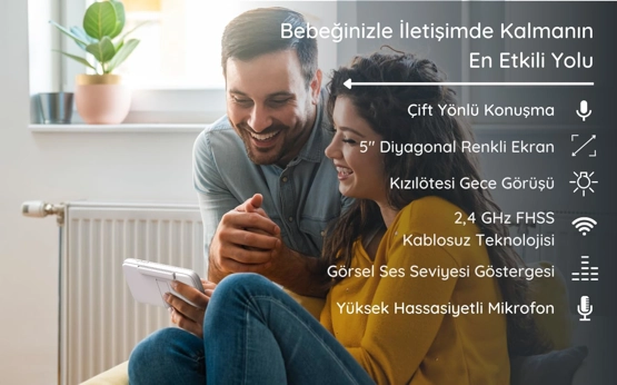 Kamerayı aşağı-yukarı, sağa-sola hareket ettirebilme ve yakınlaştırma. 2,4 ghz fhss kablosuz teknolojisi 5" diyagonal renkli ekran,oda isısı sensörü. Çift yönlü konuşma,ninniler,kızılötesi gece görüşü. Görsel ses seviyesi göstergesi,yüksek hassasiyetli mikrofon. 300 metreye kadar etkili menzil. Kamerayı uzaktan sağa-sola, yukarı-aşağı hareket ettirme ve yakınlaştırma özelliğiyle bebeğinizin ve odasının görüntüsü en ufak detayına kadar parmaklarınızın ucunda. Yüksek hassasiyetli mikrofonu sayesinde bebeğinizi rahatça duyabilir ve çift yönlü konuşma özelliğiyle bebeğinizle iletişim kurabilirsiniz. Önceden yüklenmiş hazır ninnilerle bebeğinizin uyumasını kolaylaştırırken, kızılötesi gece görüşüyle karanlık ortamda bile bebeğinizi izlemenin tadını çıkarabilirsiniz.