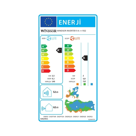 Ek Özellikler Buz Çözme Fonksiyonu : Var Otomatik Sıcaklık Kontrolü : Var 6 Kademeli İç Ünite Fan Hızı : Var Arıza Durumunda Çalışma : Var Dijital DC Inverter Teknolojisi : Var -10˚C de Isıtma : Var Hata Teşhis ve Otomatik Koruma Fonksiyonu : Var Otomatik Dikey Hava Salınımı : Var Sıcaklık Göstergesi : Var Renkli Ekran LCD Uzaktan Kumanda : Var Restart Fonksiyonu : Var Üfleme Yönü Hafızası : Var Çıkarılıp Yıkanabilen Ön Filtre : Var İyonizer : Var Fiziksel Bilgiler: İç Ünite Boyutları (mm) (YxGxD)281*822*190 Turbo Modu : Var Uyku Modu : Var Nem Alma Fonksiyonu : Var Favori Modu : Var Otomatik Fan Hız Ayarı : Var Genel Özellikler Ürün Tipi : Ev Tipi Split Inverter Klima BTU Değeri : 9000 Soğutucu Gaz : R32 Yeni Nesil Çevreci Gaz Isıtma Enerji Sınıfı : A Soğutma Enerji Sınıfı : A++ Ücretsiz Garanti Süresi : 3 Yıl Garanti Klimalar, yaşam alanlarının iklimlendirme cihazlarıdır. Yaz ve kış aylarında kullanılabilen bu cihazlar, ısıtma ve soğutma işlemi için kullanılır. Isıtma ve soğutmanın yanı sıra sirkülasyon, havadaki nem oranın belirli bir seviyede tutulması gibi işlevleri de mevcuttur. Windsor 9000 BTU klimanın bir saatte taşınan ısı değerini belirleyen bir terimdir. BTU değerini belirlemek için yaşam alanının kat sayısı ve soğutulacak ya da ısıtılacak alanın metrekaresi çarpılır. Windsor Klimanın Özellikleri Klimaların önceliği, yaşam alanlarını konforlu, serin ya da sıcak tutmaktır. Windsor 9.000 BTU A++ inverter split klima uyku modu özelliği sayesinde uzun süreli çalışmada kullanım sağlar. Sıcaklık ayarındaki artışı kademeli olarak arttırır. Otomatik sıcaklık kontrolünü yapar. Windsor klima, elektrik kesintisinden sonra çalışmaya devam eder. Renkli LCD ekran ve uzaktan kumandası ile sadece bir tuşla istenilen sıcaklığa erişilir. Windsor klima, dikey hava salınımı özelliği ile üflenen havanın odaya daha çabuk yayılmasına katkı sağlar. Çıkarılıp yıkanan filtreye sahiptir. Windsor Klima Avantajları Özellikle yaz aylarının vazgeçilmez cihazları başında klimalar yer alır. Yaşam alanlarında daha temiz bir hava imkanı sunmaya yardımcı olur. Windsor klima zarif tasarıma sahiptir ve montajı da oldukça kolaydır. Maksimum verimliliği ile konforlu bir ortam oluşturur. Yüksek tavanlı yaşam alanları için avantaj sağlar. Windsor klima, odanın havasını ayarlanan sıcaklığa göre optimize eder. Windsor 9.000 BTU A++ inverter split klima yorumları ile ihtiyaç duyulan bilgiye ulaşabilirsiniz. Windsor Klima Fiyatları Windsor 9.000 BTU A++ inverter split klima fiyatları kullanılan mekan ölçülerine ve ürüne göre farklılıklar gösterir Klimanın çalışma alanı ve diğer özellikleri göz önünde bulundurularak farklılık gösterebilir.Genel olarak uygun fiyatlı ve bütçe dostu olan ürünler, size maliyet olarak fayda sağlar Windsor 9.000 BTU A++ inverter split klima en ucuz ve uygun fiyatlı ürünler arasında yer alır. Size hem kolay kullanım imkanı hem de uygun fiyatlar sunan ürün, dayanıklı ve uzun ömürlü olması ile de dikkat çeker. Windsor 9.000 BTU A++ inverter split klima satın almadan önce performans ve donanımsal farklılıklar göz önünde bulundurulur. Kaliteli ve uygun fiyatlı Windsor klimalara Hepsiburada üzerinden ulaşabilirsiniz. Windsor Klima Nasıl Çalışır? Klima, içerisinde bulunan gazın sıkıştırılması ile çalışır. Sıcak hava mekandan alınır ve dış üniteye taşınır. Klimanın kumandası ile ihtiyaç duyulan sıcaklık ayarlanır. Fan ile sıcaklık derecesi odanın içine etkili şekilde yayılır. Windsor klima, otomatik ve zamanlayıcı özellikler ile arzu edilen zaman dilimine programlanabilir. Klima Bakımı Ne Sıklıkla Yapılmalıdır? Yılda en az bir kez yaz başlamadan klima bakımlarının yapılması önerilir. Sıklıkla kullanımda yılda iki kez de yapılabilir. Klima kapalıyken iç ünitesi bez yardımıyla temizlenebilir. Fanın temiz ve kuru kalması cihazın ömrünü uzun yıllar korumasına yardım eder. Klimalar Ne Kadar Elektrik Harcar? Klimaların harcadığı elektriği belirleyici bir çok etken bulunur. Inverter teknolojisine sahip olan cihazlarda, oda sıcaklığı istenilen seviyede olduğunda otomatik olarak bekleme konumuna girer. Beklemeye alınan cihaz enerji kaybı yaşamaz. A sınıfı 9.000 BTU kapasiteli Windsor klima, saatte yaklaşık 0,8 kW elektrik tüketir. Windsor Klima Odayı Ne Kadar Isıtır? Çevreye daha az zarar veren A sınıfı klimalar diğer ısıtıcılara göre daha düşük maliyetli ısınma sağlar. Cihazın önünde hava akışını engelleyecek ürünler yerleştirmemek gerekir. Klima kullanılan alanın büyüklüğüne göre tercih edilmesi daha verimli olur. Isıtma işleminin kalitesi dışarıda bulunan hava ile de ilgilidir.